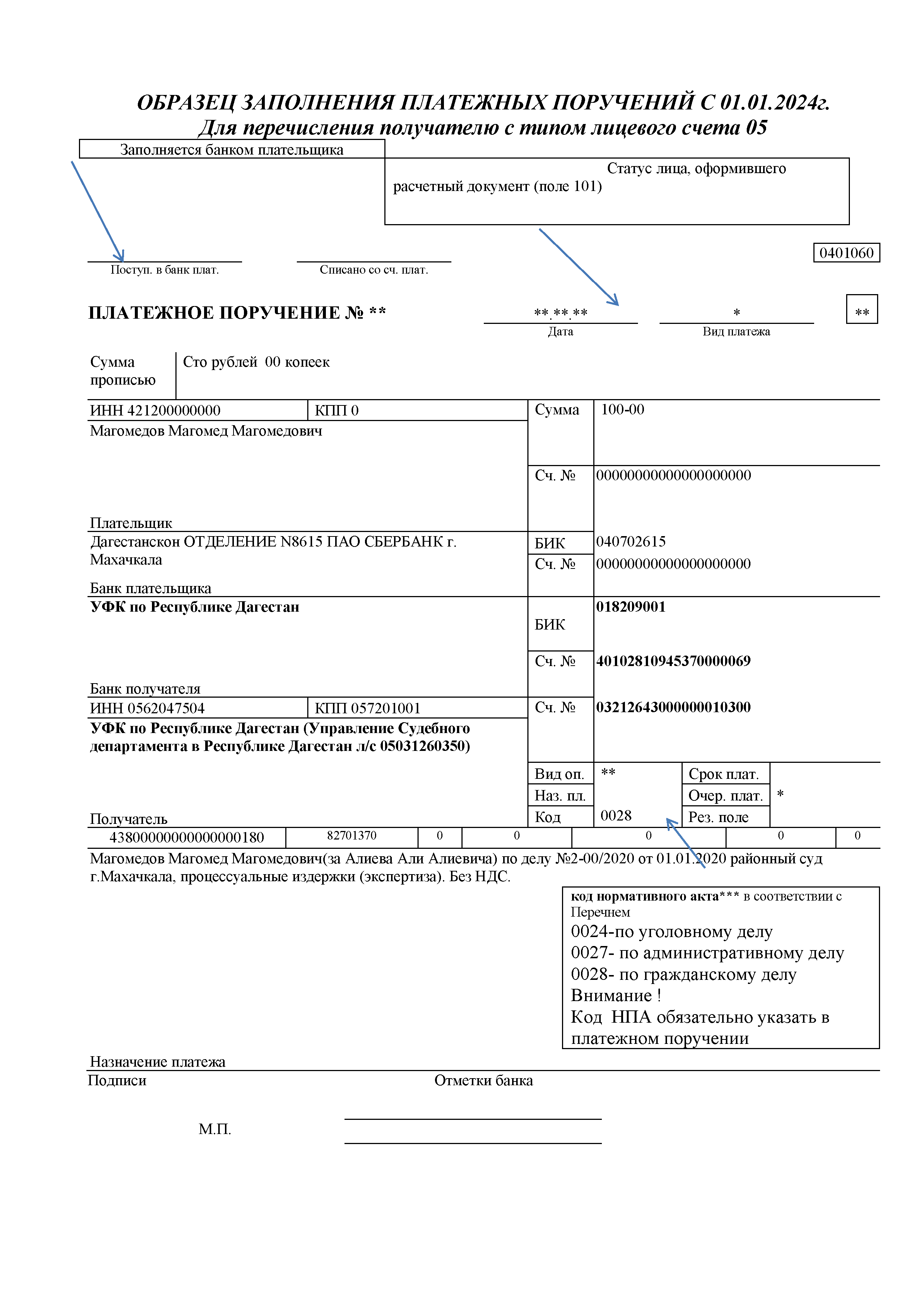 С 01.01.2024 г. для перечисления получателю с типом лицевого счета 05